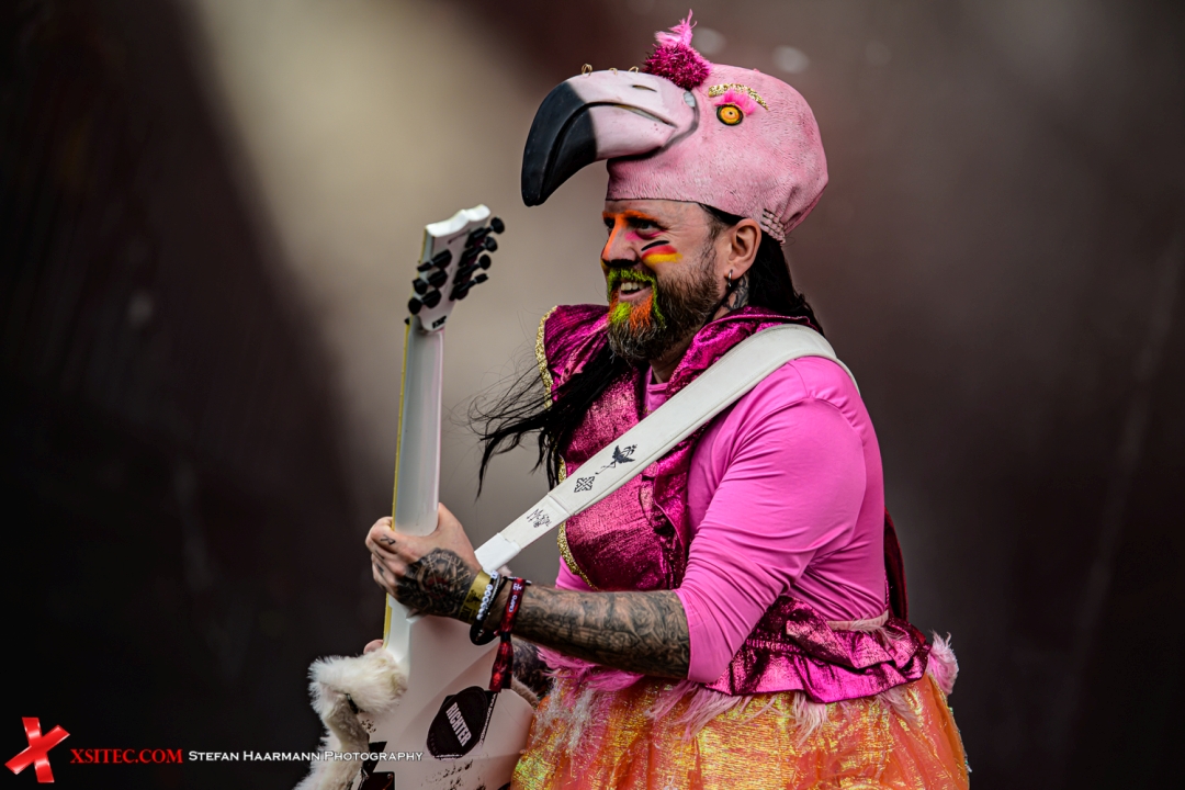 Frankreichs tonnenschwerer Export: präzise wie ein Uhrwerk, wuchtig wie eine Springflut. Die HARDER bekommt tektonische Riffs, hypersaubere Doublebass-Parts und ökologische Untertöne. Die Texte weisen teilweise spirituelle Einsichten aus, die im Infield, nicht zuletzt aufgrund des wieder einmal herunterprasselnden Regens, nicht wirklich wahrgenommen werden. Die französischen Metal-Meister liefern eine Darbietung, die sowohl technisch atemberaubend als auch spirituell gewaltig ist. Als der Himmel sich verdunkelt, macht das hypnotische, hämmernde Intro von „Born For One Thing" einem Set Platz, das sich wie ein urtümliches Ritual anfühlt. Die Visuals von Entwaldung und Ozeanverschmutzung während „The Chant" und „Amazonia" sind eindringlich und verwandeln das Konzert in eine machtvolle, gemeinsame Aussage. Das synchronisierte Headbangen während „Stranded" ist ein Bild für die Götter, in dem die hier versammelte Metal-Armee im Schlamm zur Einheit wird. Großartig.